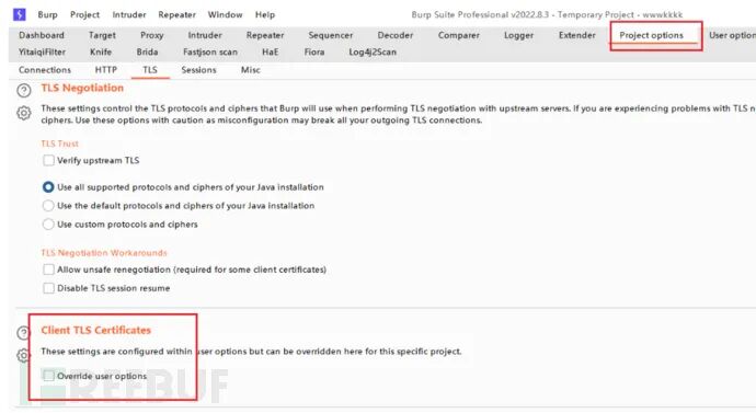 注意事项:如果在user options 配置了证书,记得不要勾选project options 的Client SSL Certificates 的override user options