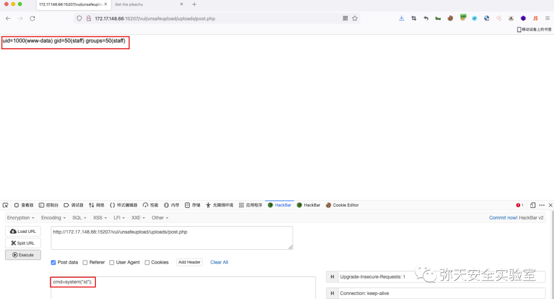 5.上传文件进行命令执行测试