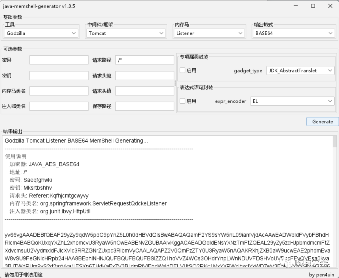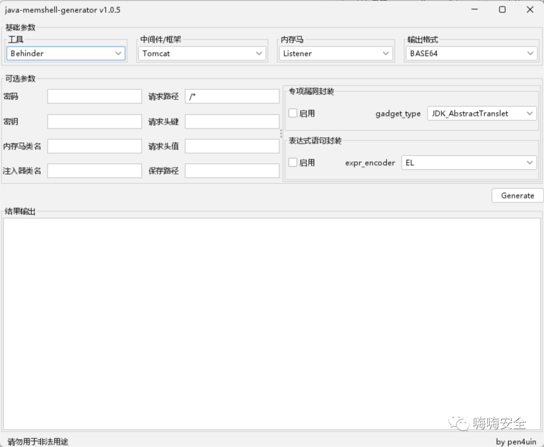 jMG (Java Memshell Generator) 是一款支持高度自定义的 Java 内存马生成工具,提供常见中间件的内存马注入支持。不仅可作为 woodpecker 的插件使用,也可以作为独立的 GUI 工具使用。https://github.com/pen4uin/java-memshell-generator