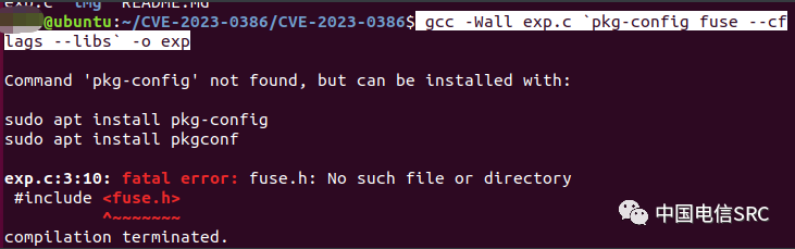 缺少fuse.h,是缺少libfuse-dev依赖库导致,通过apt包管理器安装相应的库