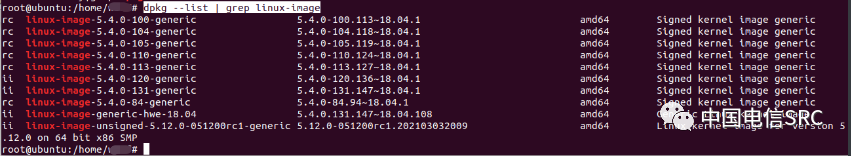 查看已经安装的内核,其中'linux-image-unsigned-5.12.0-051200rc1-generic'为我们需要的内核版本: