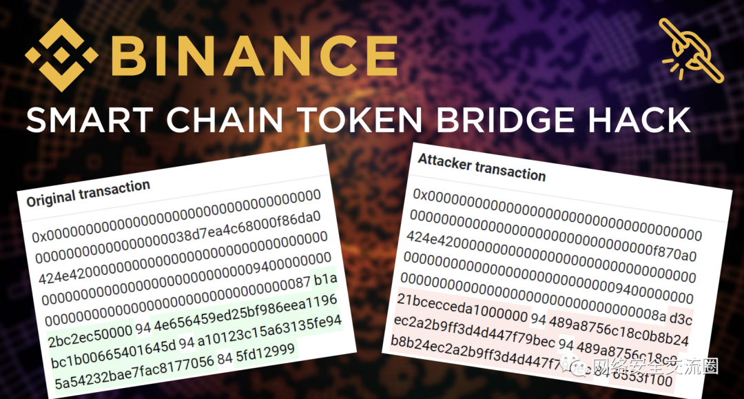 2022 年10 月 6 日,最大的加密货币交易所币安旗下的 BSC Token Hub 桥(以下简称 BSC)遭到黑客攻击。这是有史以来最大的加密货币黑客攻击之一。BSC 确保币安用于去中心化管理(堆叠、投票)的币安信标链区块链与币安智能链(用于创建各种去中心化应用程序的与 EVM 兼容的区块链)之间的交互。黑客从桥接协议中提取了 200 万个 BNB(币安的加密货币),其中 1 个 BNB 当时价值 293 美元。总计 5.86 亿美元被盗。