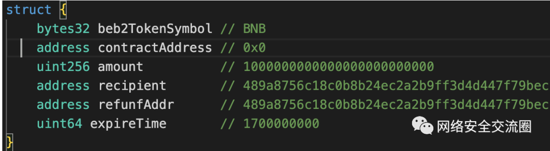 他们使用了两年前从 BSC 桥上转移 0.05 BNB 的合法交易。他们通过将攻击者地址指定为接收者来更改有效负载,并将金额更改为 100 万 BNB:
