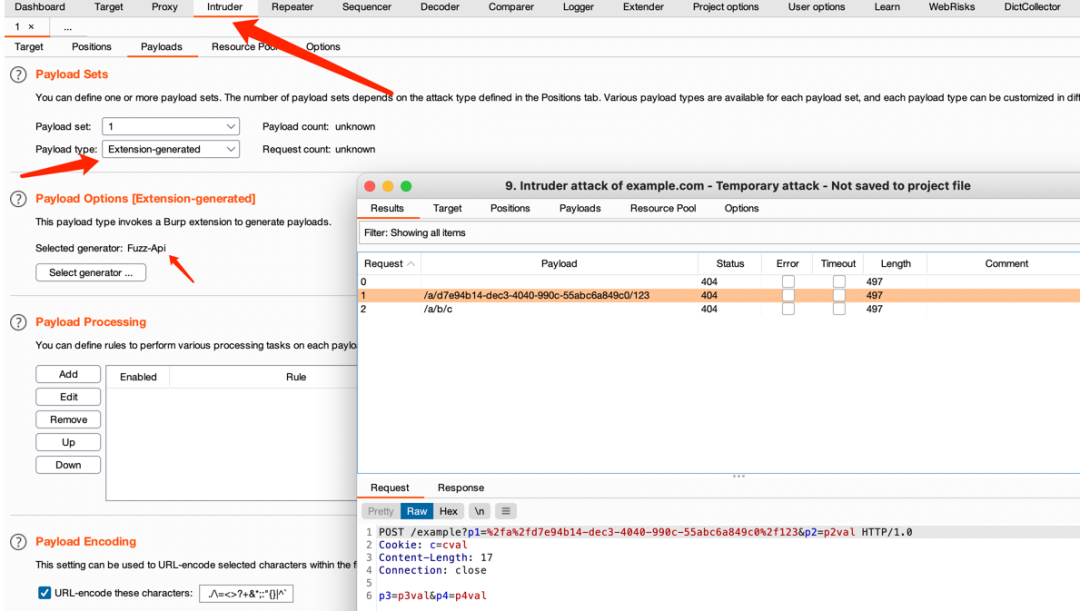 2、常规Intruder的使用,选择拓展的生成器即可![]()