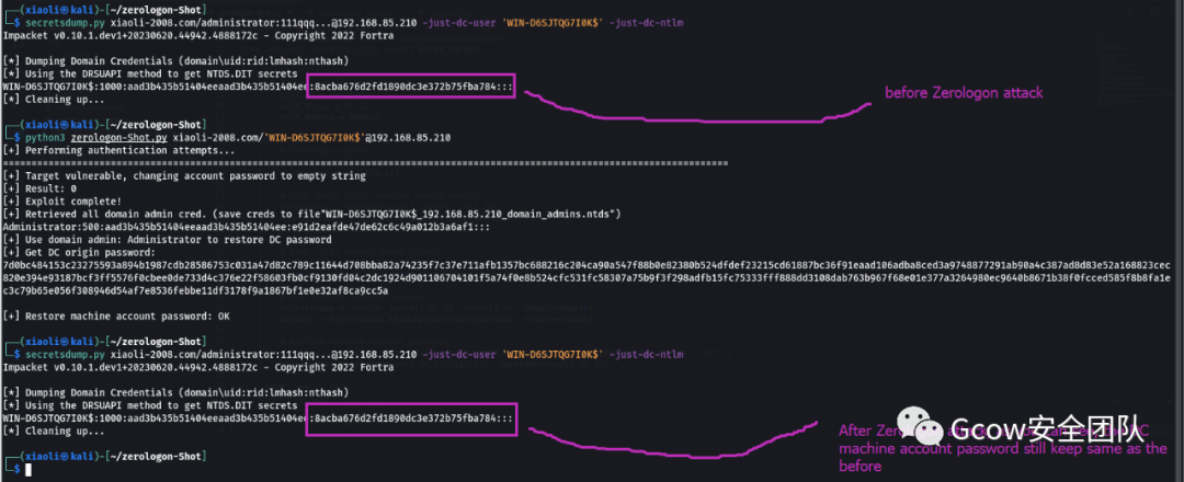 • 1、zerologon攻击目标DC,此时DC机器账户密码为空
