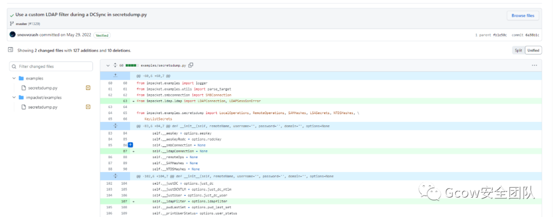 • 我们可以简化第二步,其实在上一年的更新中,impacket的secretsdump.py就已经支持ldap语法过滤用户了