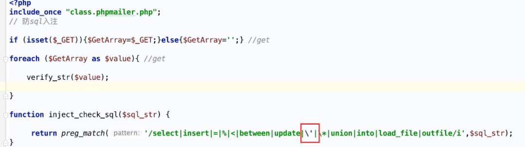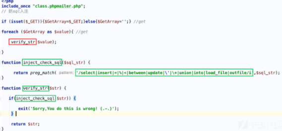 2)contorl.php:对$_GET进行全局过滤危险的SQL函数。