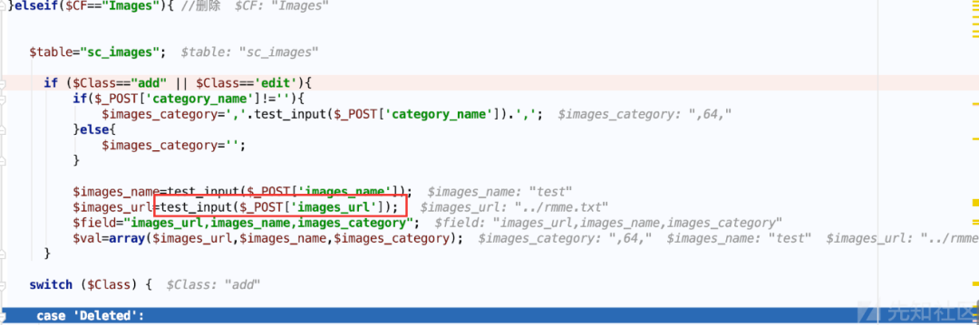 (3) 删除图片的时候,传入AID,获取到images_url字段的值../rmme.txt传入Delfile函数进行删除。