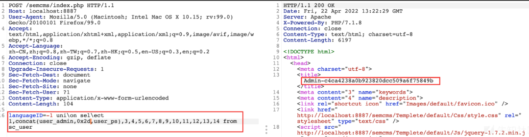 可以看到$Language没有单引号,直接拼接到语句中,且值由POST方式传递,不过这里经过了verify_str函数,导致我没有办法利用select进行子查询,获取到sc_user表的后台管理员用户密码,那么事实真的如此么?