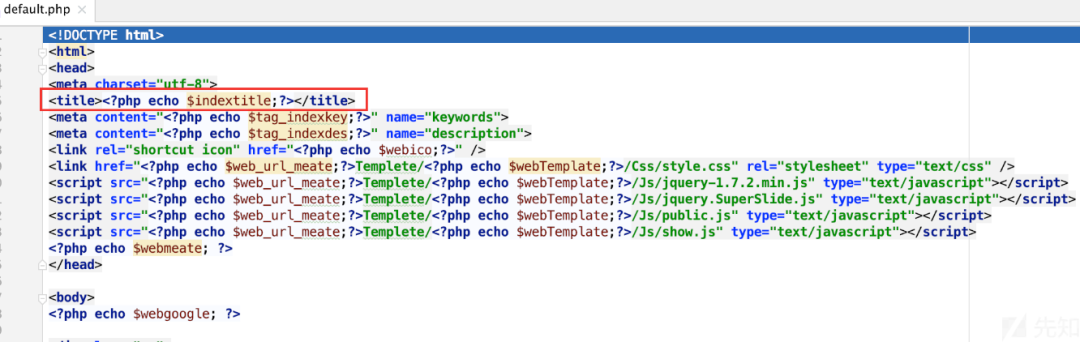 最终的话会在semcms/Templete/default/Include/index.php写入如下图所示。