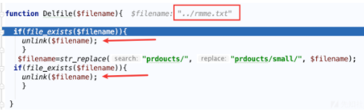 Delfile函数先判断文件是否存在,再使用unlink删掉文件,全程没有一丁点的过滤,送分题!