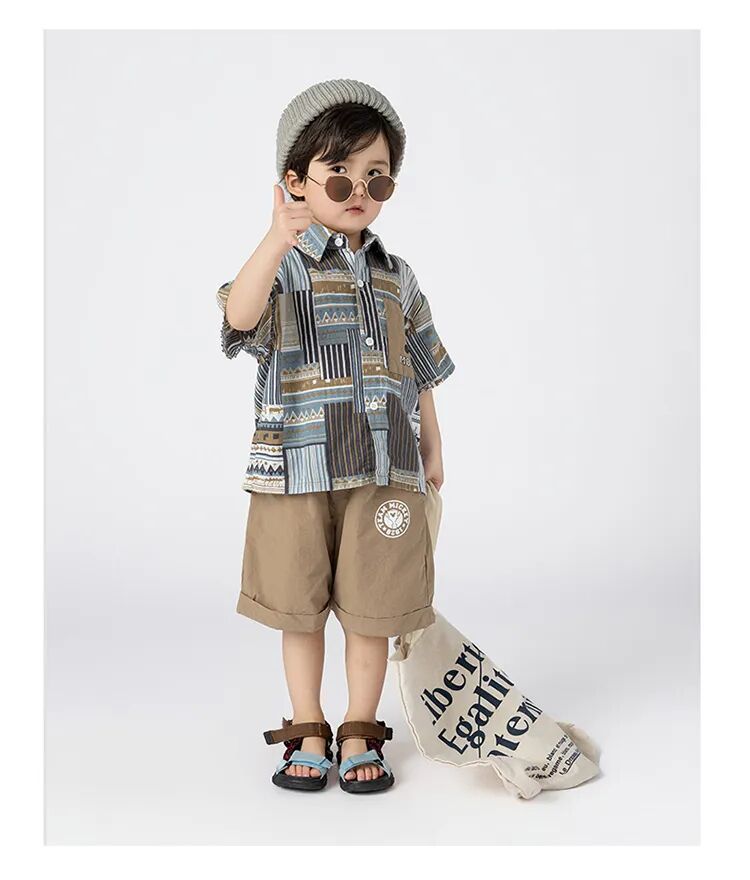 短裤的长短也很合适,在膝盖上方,凉爽舒适又不会有着凉的风险。这套简约时尚不复杂。相比那些很浮夸的图案,这种会更耐看,小朋友也不会不喜欢。
