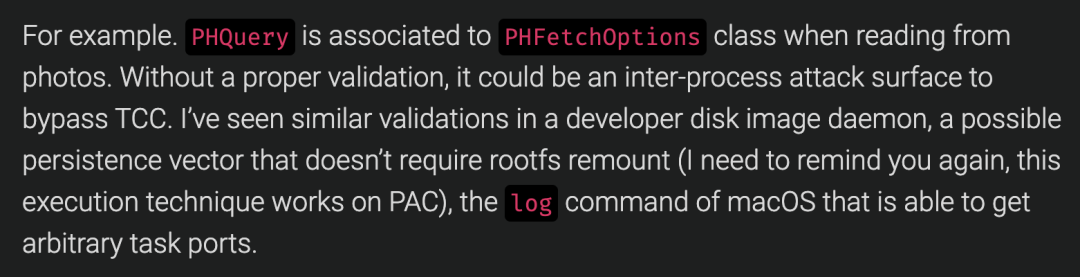 而 An Exploit Dev's Guide to NSPredicates 这篇之后会在 BlackHat USA 讲,对应 Apple's Predicament: NSPredicate Exploits on iOS and macOS