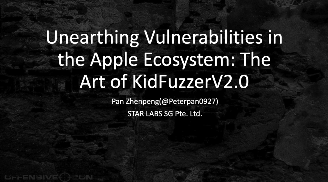 https://github.com/star-sg/Presentations/blob/9d014dc/Offensivecon%202023/Unearthing%20Vulnerabilities%20in%20the%20Apple%20Ecosystem%20The%20Art%20of%20KidFuzzerV2.0.pdf