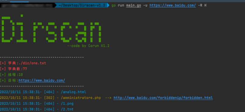 ./Dirscan -u http://xxx.xxx.xxx.xxx -R H