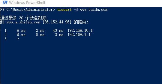 PS C:\Users\Administrator> ping用法: ping [-t] [-a] [-n count] [-l size] [-f] [-i TTL] [-v TOS] [-r count] [-s count] [[-j host-list] | [-k host-list]] [-w timeout] [-R] [-S srcaddr] [-c compartment] [-p] [-4] [-6] target_name选项: -t Ping 指定的主机,直到停止。若要查看统计信息并继续操作,请键入 Ctrl+Break;若要停止,请键入 Ctrl+C。-a 将地址解析为主机名。-n count 要发送的回显请求数。-l size 发送缓冲区大小。-f 在数据包中设置“不分段”标记(仅适用于 IPv4)。-i TTL 生存时间。-v TOS 服务类型(仅适用于 IPv4。该设置已被弃用, 对 IP 标头中的服务类型字段没有任何 影响)。-r count 记录计数跃点的路由(仅适用于 IPv4)。-s count 计数跃点的时间戳(仅适用于 IPv4)。-j host-list 与主机列表一起使用的松散源路由(仅适用于 IPv4)。-k host-list 与主机列表一起使用的严格源路由(仅适用于 IPv4)。-w timeout 等待每次回复的超时时间(毫秒)。-R 同样使用路由标头测试反向路由(仅适用于 IPv6)。根据 RFC 5095,已弃用此路由标头。如果使用此标头,某些系统可能丢弃 回显请求。-S srcaddr 要使用的源地址。-c compartment 路由隔离舱标识符。-p Ping Hyper-V 网络虚拟化提供程序地址。-4 强制使用 IPv4。-6 强制使用 IPv6。PS C:\Users\Administrator> route操作网络路由表。ROUTE [-f] [-p] [-4|-6] command [destination] [MASK netmask] [gateway] [METRIC metric] [IF interface] -f 清除所有网关项的路由表。如果与某个 命令结合使用,在运行该命令前, 应清除路由表。-p 与 ADD 命令结合使用时,将路由设置为 在系统引导期间保持不变。默认情况下,重新启动系统时, 不保存路由。忽略所有其他命令, 这始终会影响相应的永久路由。-4 强制使用 IPv4。-6 强制使用 IPv6。command 其中之一: PRINT 打印路由 ADD 添加路由 DELETE 删除路由 CHANGE 修改现有路由 destination 指定主机。MASK 指定下一个参数为“netmask”值。netmask 指定此路由项的子网掩码值。如果未指定,其默认设置为 255.255.255.255。gateway 指定网关。interface 指定路由的接口号码。METRIC 指定跃点数,例如目标的成本。用于目标的所有符号名都可以在网络数据库文件 NETWORKS 中进行查找。用于网关的符号名称都可以在主机名称数据库文件 HOSTS 中进行查找。如果命令为 PRINT 或 DELETE。目标或网关可以为通配符,(通配符指定为星号“*”),否则可能会忽略网关参数。如果 Dest 包含一个 * 或 ?,则会将其视为 Shell 模式,并且只打印匹配目标路由。“*”匹配任意字符串,而“?”匹配任意一个字符。示例: 157.*.1、157.*、127.*、*224*。只有在 PRINT 命令中才允许模式匹配。诊断信息注释: 无效的 MASK 产生错误,即当 (DEST & MASK) != DEST 时。示例: > route ADD 157.0.0.0 MASK 155.0.0.0 157.55.80.1 IF 1 路由添加失败: 指定的掩码参数无效。(Destination & Mask) != Destination。示例: > route PRINT > route PRINT -4 > route PRINT -6 > route PRINT 157* .... 只打印那些匹配 157* 的项 > route ADD 157.0.0.0 MASK 255.0.0.0 157.55.80.1 METRIC 3 IF 2 destination^ ^mask ^gateway metric^ ^ Interface^ 如果未给出 IF,它将尝试查找给定网关的最佳 接口。> route ADD 3ffe::/32 3ffe::1 > route CHANGE 157.0.0.0 MASK 255.0.0.0 157.55.80.5 METRIC 2 IF 2 CHANGE 只用于修改网关和/或跃点数。> route DELETE 157.0.0.0 > route DELETE 3ffe::/32PS C:\Users\Administrator> tracert用法: tracert [-d] [-h maximum_hops] [-j host-list] [-w timeout] [-R] [-S srcaddr] [-4] [-6] target_name选项: -d 不将地址解析成主机名。-h maximum_hops 搜索目标的最大跃点数。-j host-list 与主机列表一起的松散源路由(仅适用于 IPv4)。-w timeout 等待每个回复的超时时间(以毫秒为单位)。-R 跟踪往返行程路径(仅适用于 IPv6)。-S srcaddr 要使用的源地址(仅适用于 IPv6)。-4 强制使用 IPv4。-6 强制使用 IPv6。