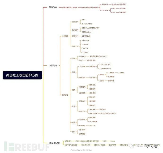 当目标打开附件时,病毒攻击随之进行,导致电脑数据被窃取,或被利用作为跳板,对企业内部系统或网络进行攻击渗透。针对各种各样的社工攻击,我们除了教育,提醒用户时刻注意微信安全以外,技术上我们也需要考虑一些相应的手段来进行补充。