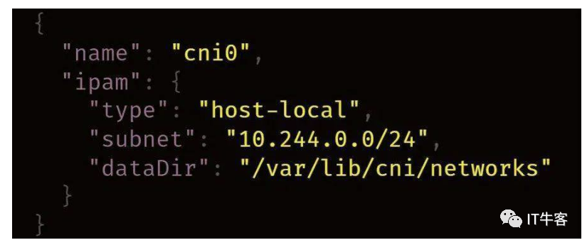 主机本地 IPAM(IP 地址管理)插件从中返回容器的 IP 地址,subnet将分配的 IP 本地存储在主机下dataDir指定的目录中/var/lib/cni/networks/<network-name=cni0>/<ip>/var/lib/cni/networks/<network-name=cni0>/<ip>文件包含 IP 分配到的容器 ID。调用时,主机本地 IPAM 插件返回以下有效负载:![]()