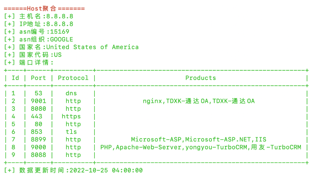 $ python3 fofamap.py -hq 8.8.8.8