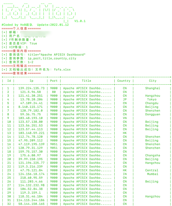 python3 fofamap.py -q 'title="Apache APISIX Dashboard"'