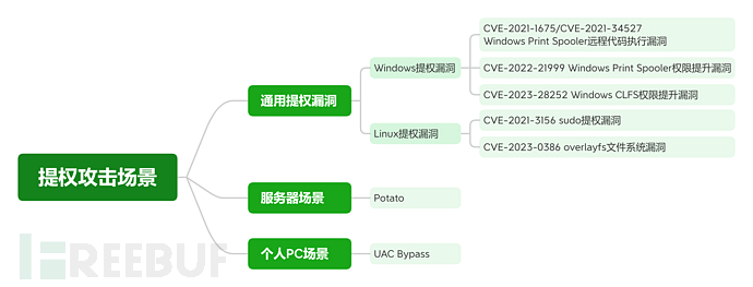 在攻防演练的后渗透阶段中,用于实现权限提升的方案里使用频率最高的有漏洞利用、UAC Bypass、Potato等: