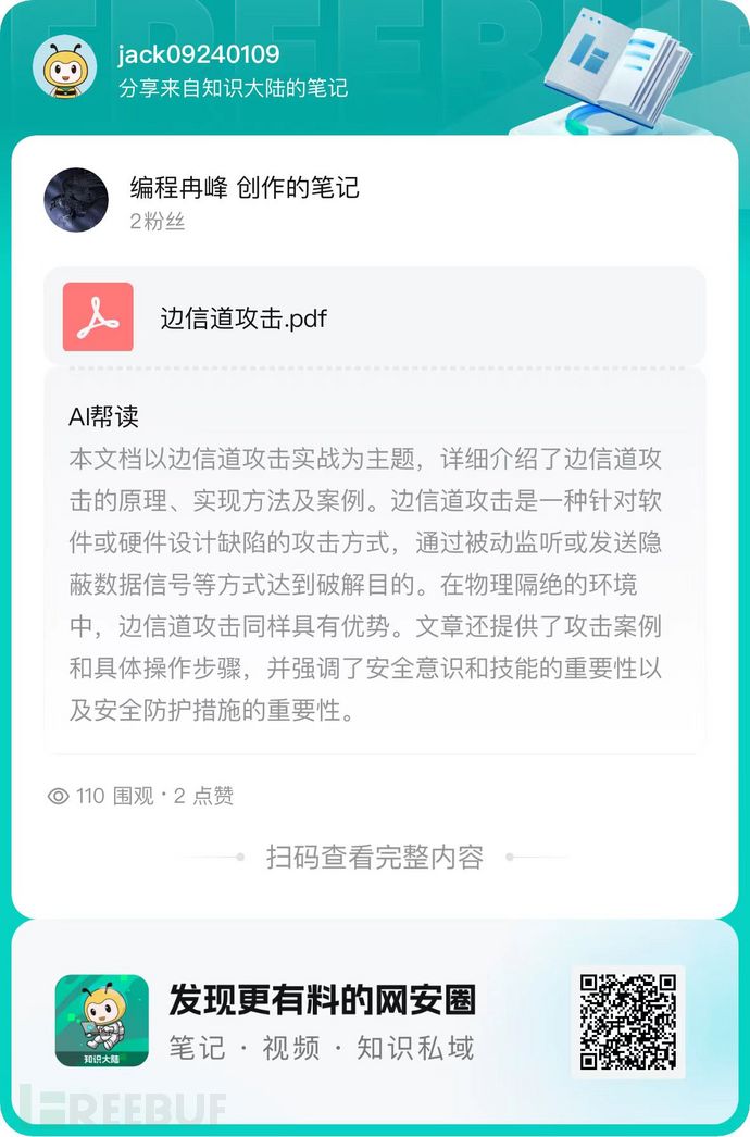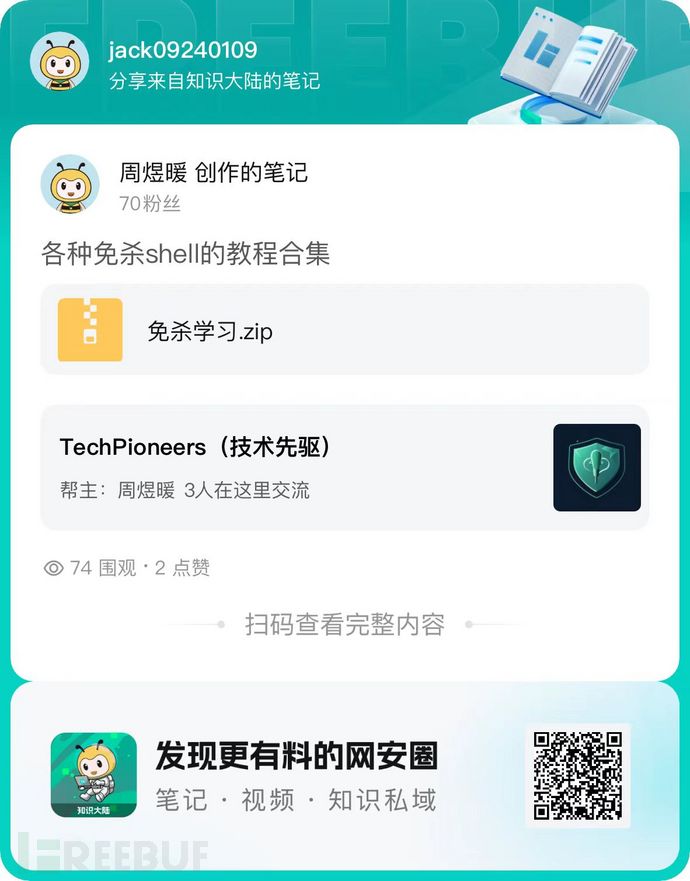 各位读者周末好,以下是本周「FreeBuf知识大陆一周优质资源推荐」,我们精选了本周知识大陆公开发布的10条优质资源,让我们一起看看吧。
