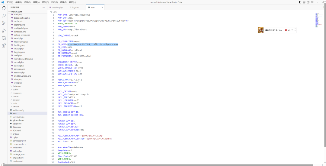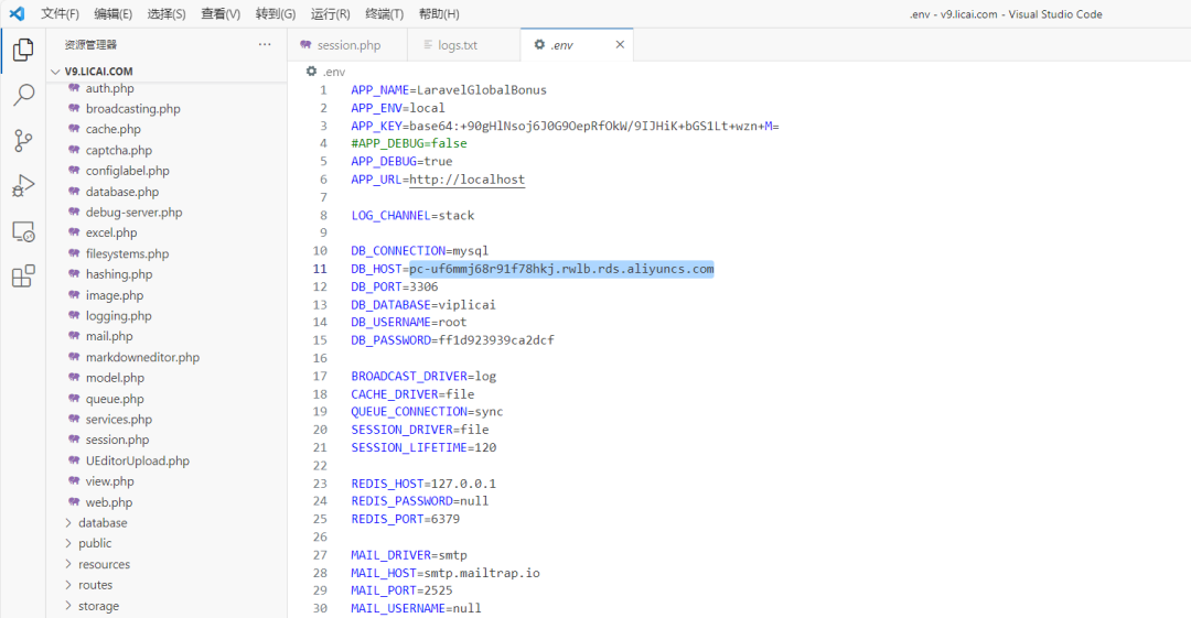 接下来恢复网站访问,将网站源码中的.env里的值修改为天仪的连接地址