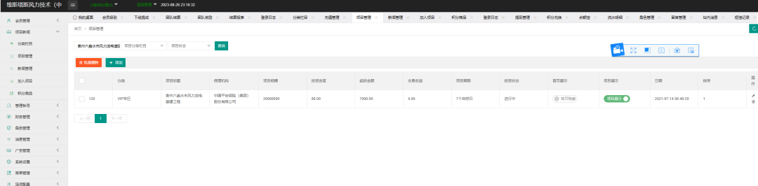 【服务器取证】投资项目“贵州六盘水市风力发电基建工程”的日化收益为?[答题格式:1.00%]