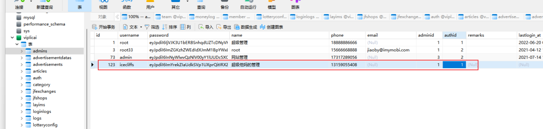 接下来对网站用户进行提权,根据谷歌浏览器保存的密码,我们随便注册一个用户设置一个简单的密码,然后把密码替换到admin表,在把用户表权限改成admin