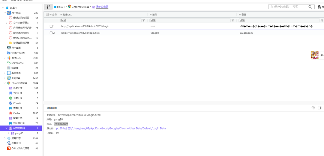 【计算机取证】请给出嫌疑人杨某登录理财网站前台所用账号密码?[答案格式:root/admin]