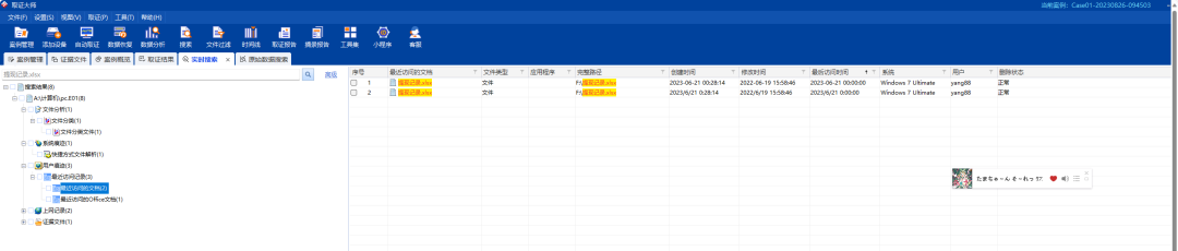 之后将恢复好的数据库上传到天仪进行数据库仿真,然后使用本地的数据库取证工具进行取证