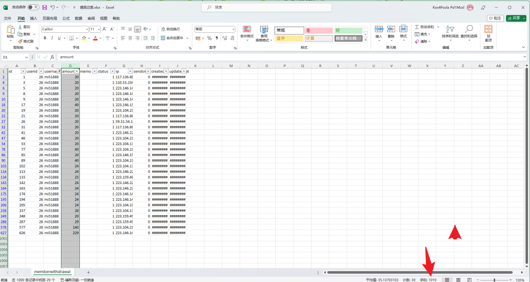 【计算机取证】分析嫌疑人电脑内提现记录表,用户“mi51888”提现总额为多少?[答案格式:10000]