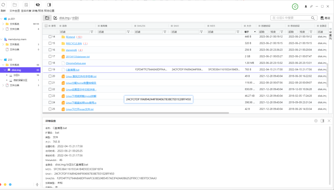 【计算机取证】请给出嫌疑人计算机内文件名为“C盘清理.bat”的SHA-1?[答案格式:字母小写]