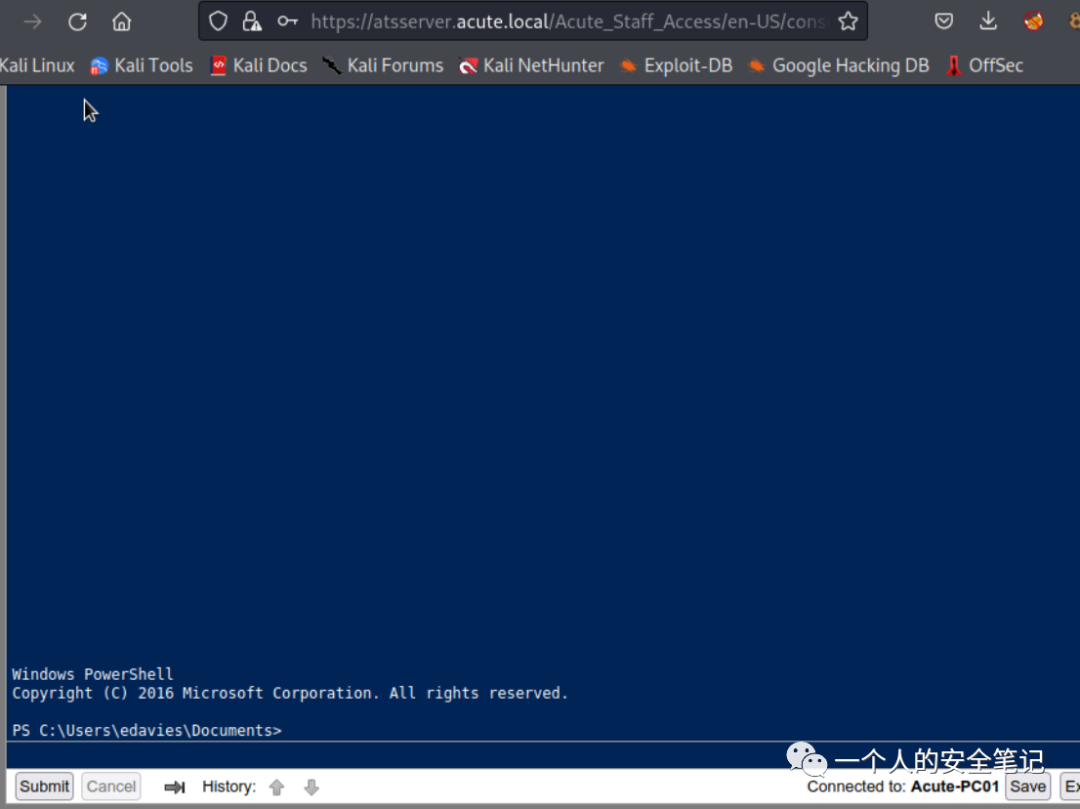lhopkins最终在尝试使用 edavies 账号进行登录时成功了,进行了 WPAW 交互控制台。