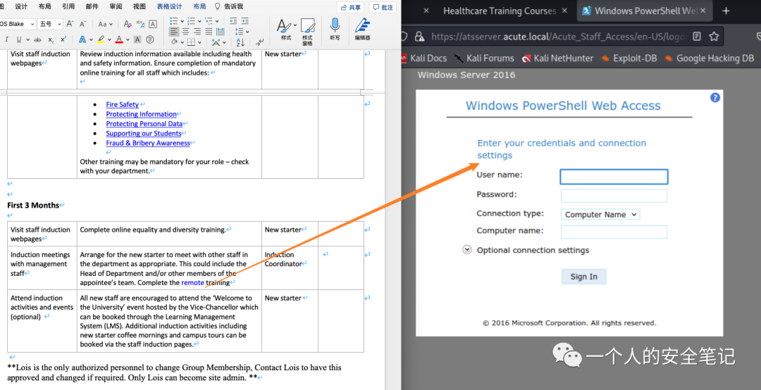 https://atsserver.acute.local/New_Starter_CheckList_v7.docx从里面的内容中大致判断是和远程培训有关,点击里面的链接能够跳转到一个 WPWA 的登录界面。