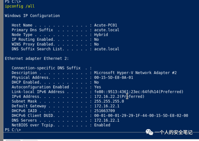 d-r--- 11/18/2020 11:43 PM Public在查看网卡信息时发现 IP 地址是一个 172 开头的地址,而非服务器 10 开头的地址。说明当前可能在虚拟容器。