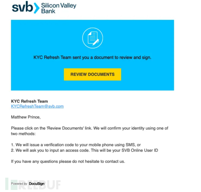这场以DocuSign为主题的SVB(硅谷银行)钓鱼攻击发生在2023年3月,攻击者针对多个组织的数十个人发动了攻击(包括Cloudflare联 合 创 始 人 兼 CEO Matthew Prince)。邮件中包含一个初始链接和一个深达四层的复杂重定向链。