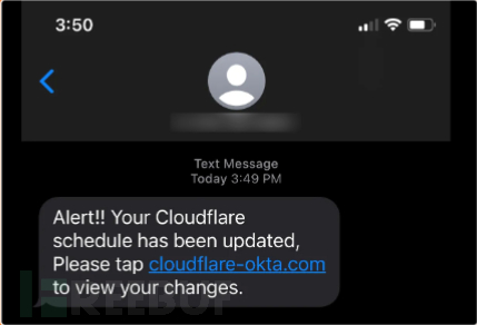 2022年7月,Cloudflare安全团队收到报告,称有员工收到了看起来合法的短信,指向一个貌似Cloudflare Okta登录页面的网址。短信指向一个看似正式的域名(cloudflare-okta[.]com),但该域名是在钓鱼企图开始前不到40分钟内注册的。
