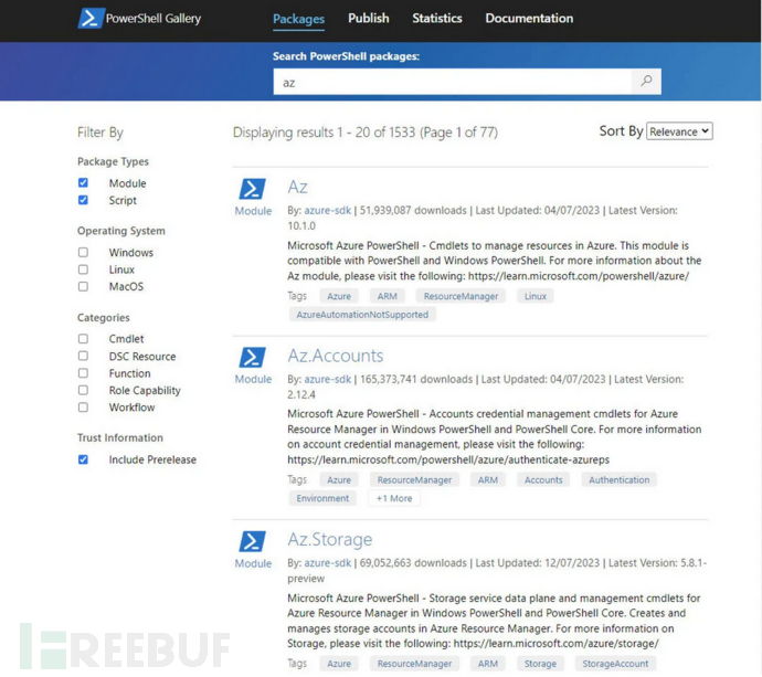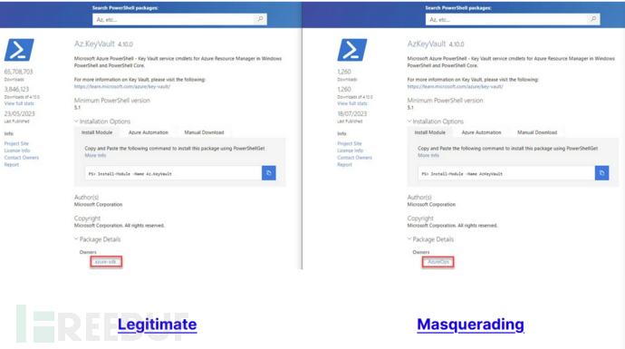 研究人员发现,大多数Azure包都是用Az.<package_name>模式创建的。但是,非常流行的模块“Aztable”并不符合这一惯例,因为缺少了点(并非Az.)。AzTable是一个关键模块,它提供了操作表的示例函数(在Azure Storage Table上添加、检索和更新实体)。考虑到其在生产中起到的关键作用,它已积累超过1000万的下载量也就不足为奇了。