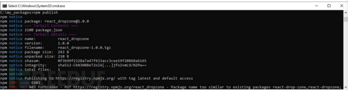 如果攻击者或其他人试图这样做,服务器将以“403 Forbidden”状态响应,表明新包名称与现有包名称太相似。