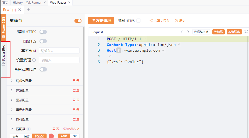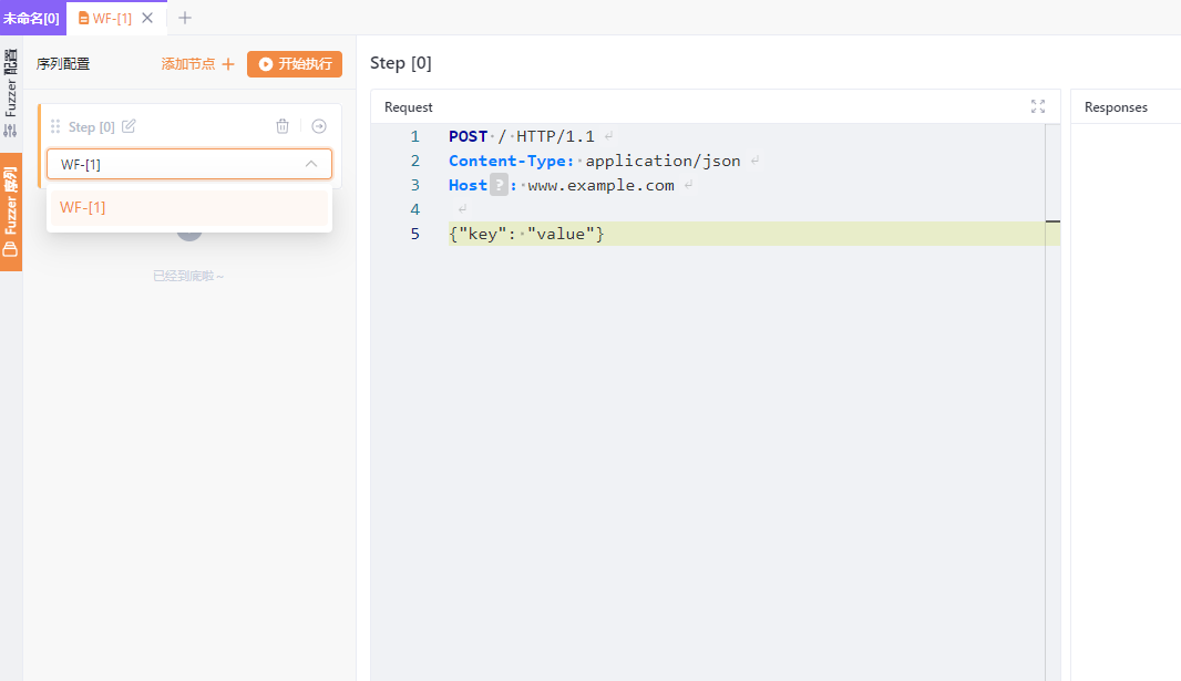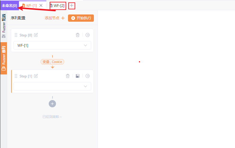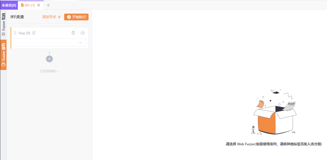 随后我们可以在 Step [0]这个节点中,添加 Web Fuzzer 的标签页WF-[1]