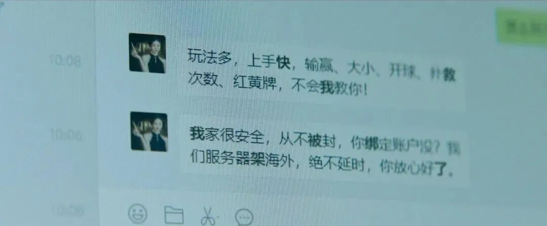 正如电影中所提到的,诈骗分子会自行编写程序,制作精美的网络赌博广告,以“伪基站”的方式进行传播、群发短信,诱导受害人下载被包装成“网络赌博”的诈骗APP。