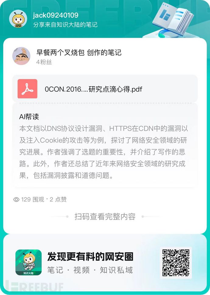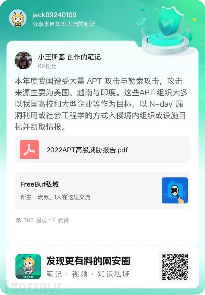 各位读者周末好,以下是本周「FreeBuf知识大陆一周优质资源推荐」,我们精选了本周知识大陆公开发布的10条优质资源,让我们一起看看吧。