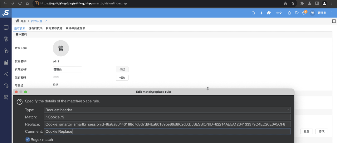 替换如下Cookie标头便能成功实现管理员用户登录。