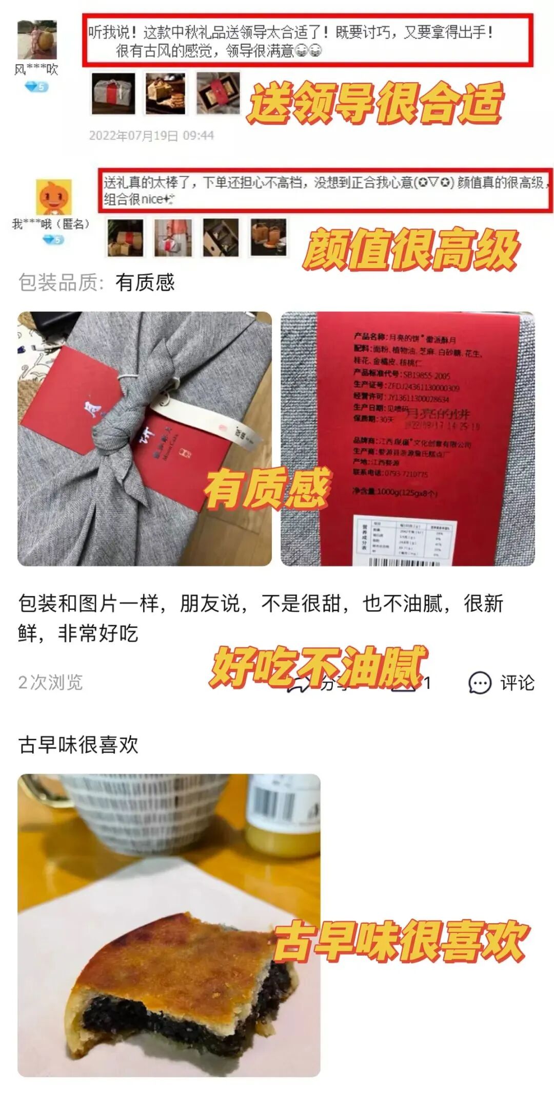 都说做酥月,没有什么额外的添加和过于炫技的技法,有的只是一颗颗真诚的心,原料实诚,经验娴熟,工序用心,每一个环节都是古老的延续。“黑馅肚”中的黑芝麻必须是当季新收成的芝麻,油脂丰富,香气浓郁,咬上一口绵滑细腻的芝麻,又甜又香的芝麻带给味蕾百分满足感!口味上也有不同的选择,分别用菜籽油、芝麻油、野生山茶油制作。◆ 婺源油菜花闻名中国,以油菜花为原料的菜籽油正是江西特产之一,香味浓郁,当地人很喜欢;◆ 江西出产黑芝麻历史悠久,品质好,芝麻油营养又健康 ,也广受国人喜欢;◆ 婺源也盛产山茶油,采用非遗土法压榨,营养价值高,素有“东方橄榄油”、“长寿油”之称。这3种植物油都是江西本地特产,产地好、营养足,还是植物压榨油,老人小孩都能放心吃~没有多余的化学添加,相比保质期长达12个月的网红月饼,这款保质期更短,只有30天,吃着却更安心。中秋快到了,而选购一份好月饼的标准:一半是味道,另一半是回忆。老中青三代人都喜欢的老式酥月,传统手工,朴实真诚,一如时光里不变的温暖情愫。一层层酥皮包裹的芝麻馅,是小时候吃过的老味道,而这,亦是家的味道。注意:月饼手工制作,默认48小时发货。如希望稍晚发出可指定发出时间,拍下的同时留言发货日期。![]()