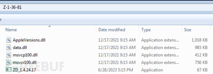可执行文件(图像中的ZD_1.4.24.17)始终是用于DLL附带加载的合法工具。主要的恶意逻辑在侧加载的DLL中(这里是AppleVersions.dll)。加载后,它要经历几层解包,包括一个很好地混淆了的检查,检查它的父进程是从Z-1-36-81目录(同样,目录名称因样本而异)中启动的,该目录隐藏在一些复杂的控制流结构中。