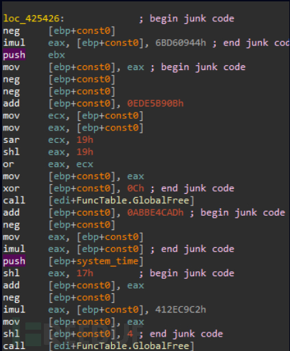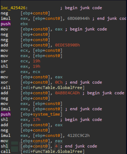 虽然研究人员很好地忽略了junk code,并且通过动态执行代码和观察解码器输出很好地处理了混淆的字符串,但是在IDA数据库中解析函数调用需要专门的脚本。