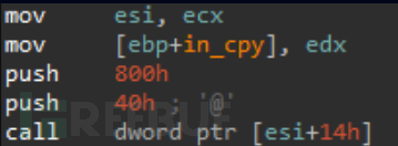 一旦解包完成,恶意逻辑就可见了。最后阶段仍然包含一些反分析特性,例如花指令(junk code,主要用于干扰);使用简单的替换密码实时解密的加密堆栈字符串;以及使用自制函数表解析的间接调用,其中寄存器(register)指向传递给ecx中每个函数的内容。然后每次将其复制到一个随机寄存器,该寄存器用于实现调用。